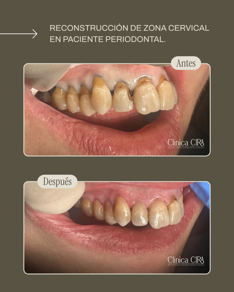 Paciente que acudió a Clínica CIRA buscando mejorar la estética y funcionalidad de su sonrisa. Tras una valoración personalizada, se diseñó un tratamiento adaptado a sus necesidades para conseguir un resultado natural, armónico y duradero.